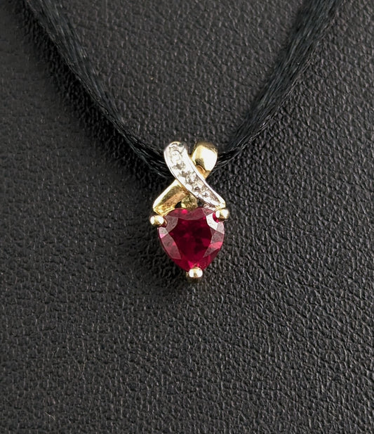 Tiny Vintage Synthetic Ruby and diamond heart pendant