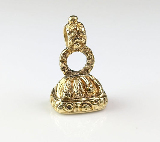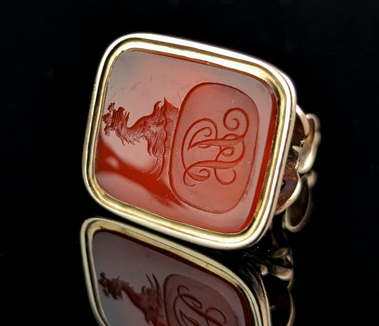 Large antique Georgian seal fob pendant, 9ct gold and Carnelian, Heraldic