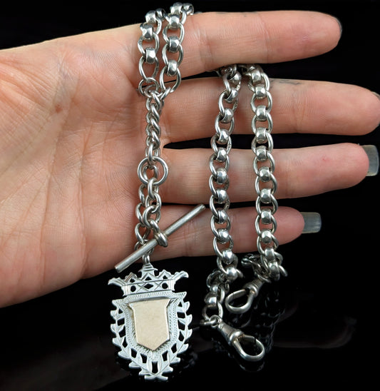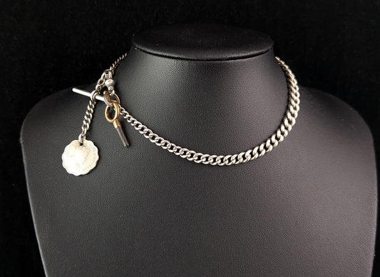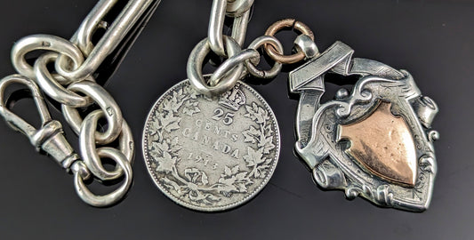 Antique sterling silver Albert chain, watch chain, Coin fob