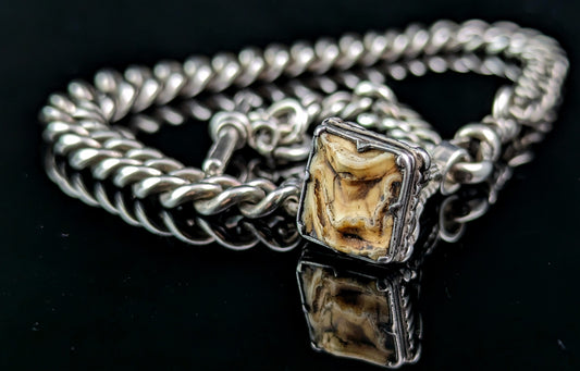 Antique Edwardian sterling silver Albert chain, tooth fob