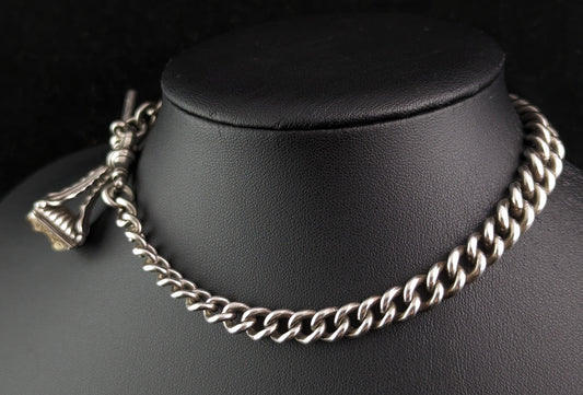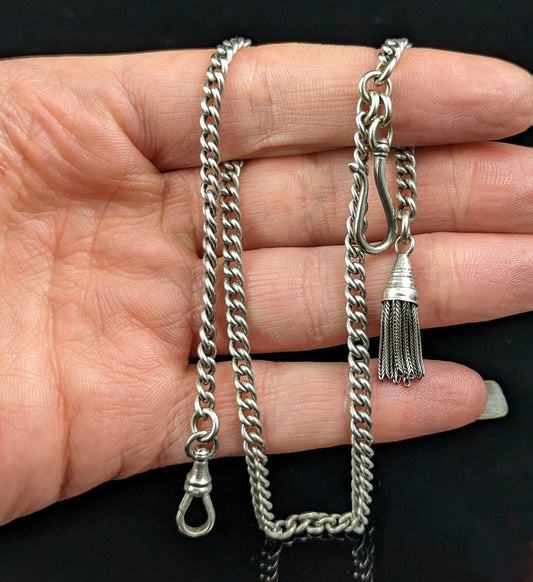 Antique Victorian sterling silver Albertina chain, Watch chain