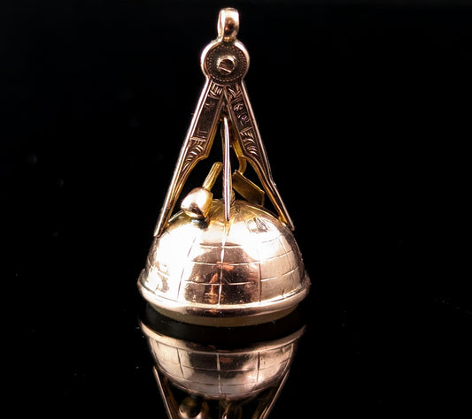 Antique Masonic seal fob pendant, 9ct gold, chalcedony