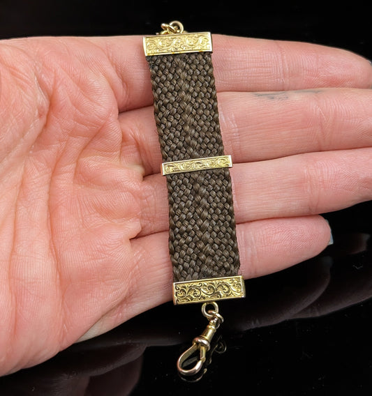 Antique Hairwork Watch fob chain, 9ct gold, Victorian