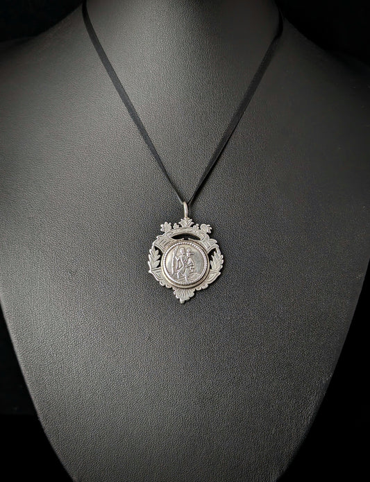 Antique Victorian sterling silver watch fob pendant, St Christopher