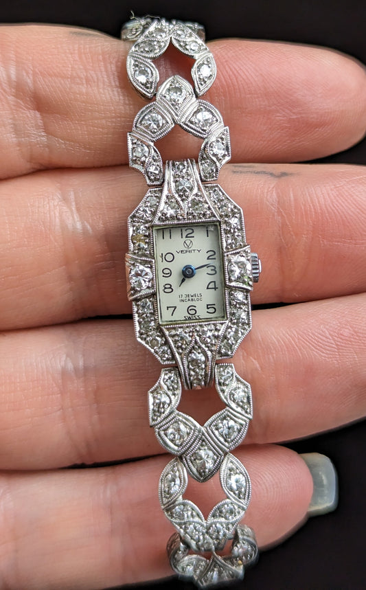Vintage Art Deco Platinum and Diamond cocktail watch, ladies wristwatch