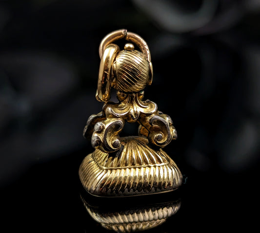 Antique 18ct gold Entwined snakes seal fob pendant, Carnelian