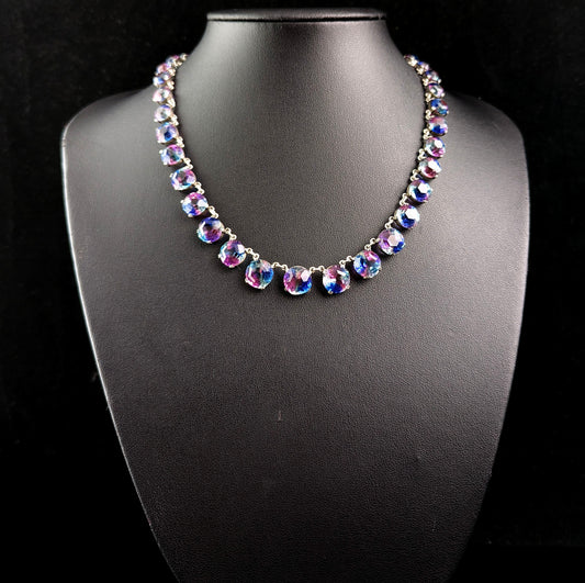 Vintage Art Deco sterling silver and Iris glass riviere necklace
