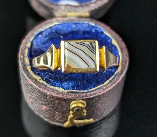 Vintage Banded Agate signet ring, Art Deco, 9ct gold