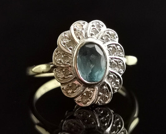 Vintage Blue Topaz and Diamond cluster ring, 9ct gold