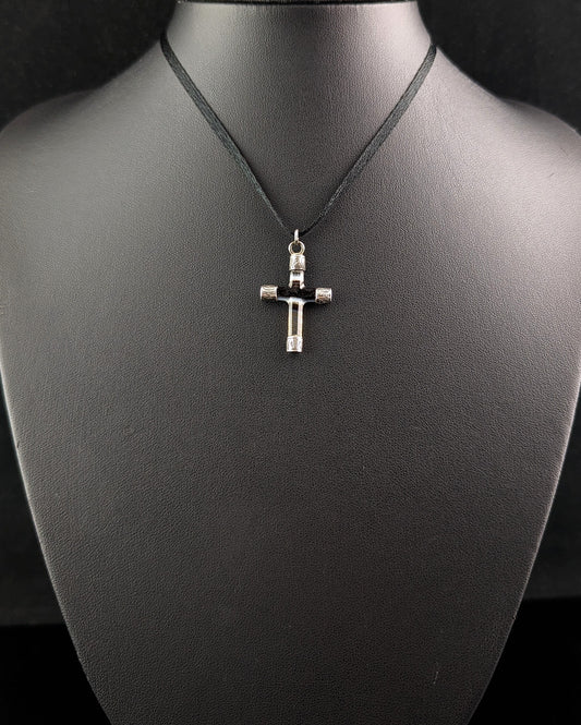 Antique banded agate Cross pendant, Victorian, sterling silver
