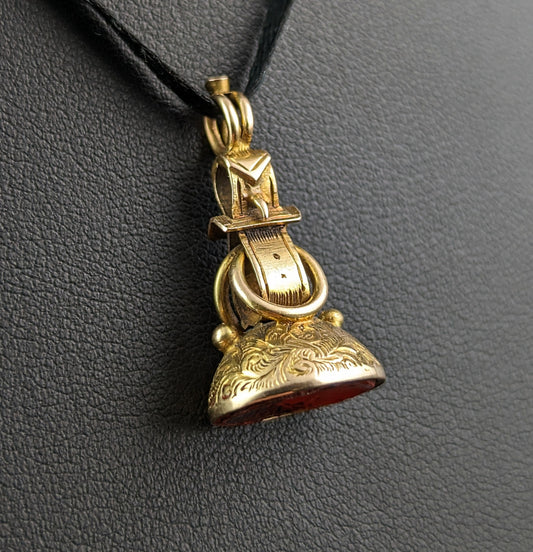 Antique Belt and Buckle seal fob, 9ct gold, Pendant
