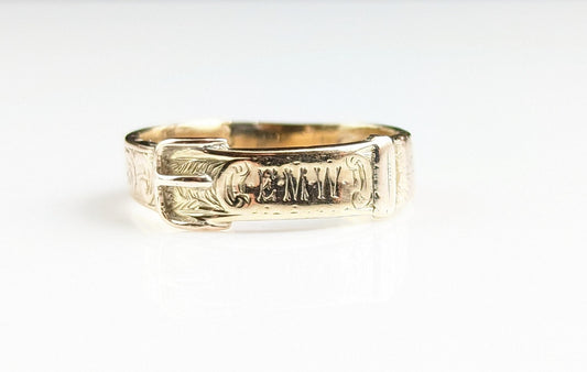 AusverkauftAntique 9ct gold buckle mourning ring, Victorian