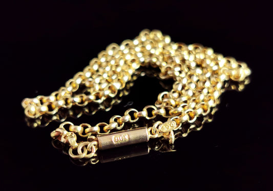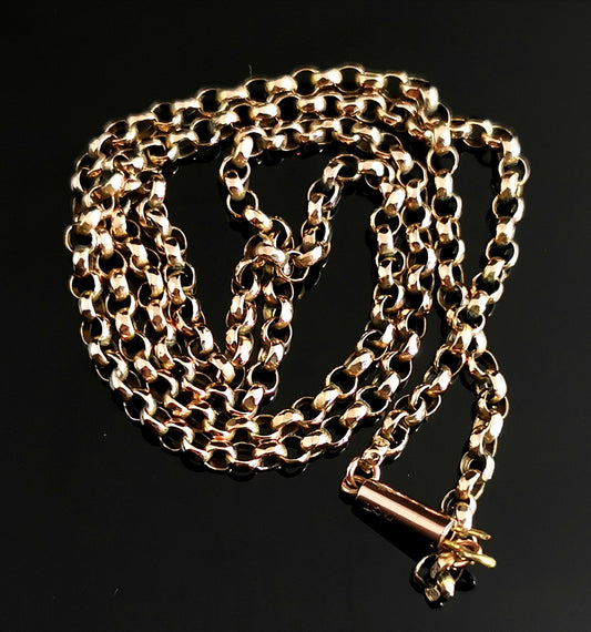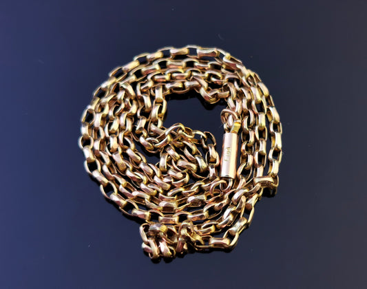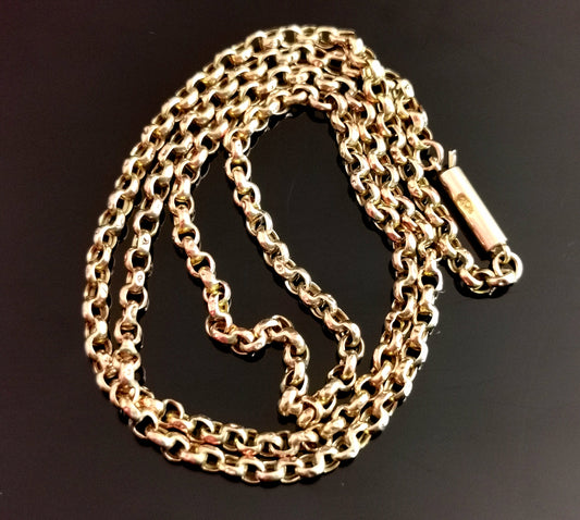 Antique 9ct gold Belcher link chain necklace, rolo link, Edwardian