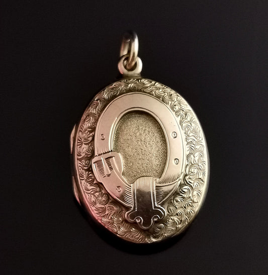 Antique 9ct gold buckle locket, Victorian, Order of the Garter