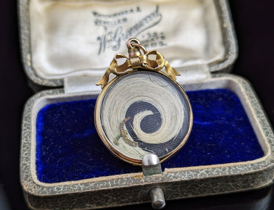 Antique 9ct gold bow top locket, Edwardian, Mourning