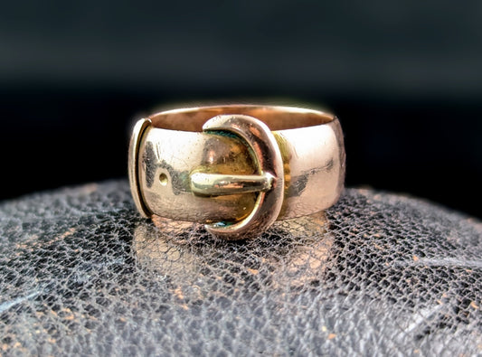 AusverkauftAntique 9ct gold chunky buckle ring, Victorian