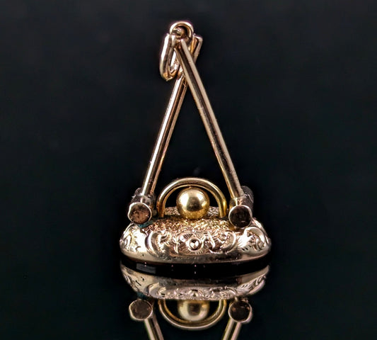 Antique 9ct gold Croquet seal fob pendant, Carnelian