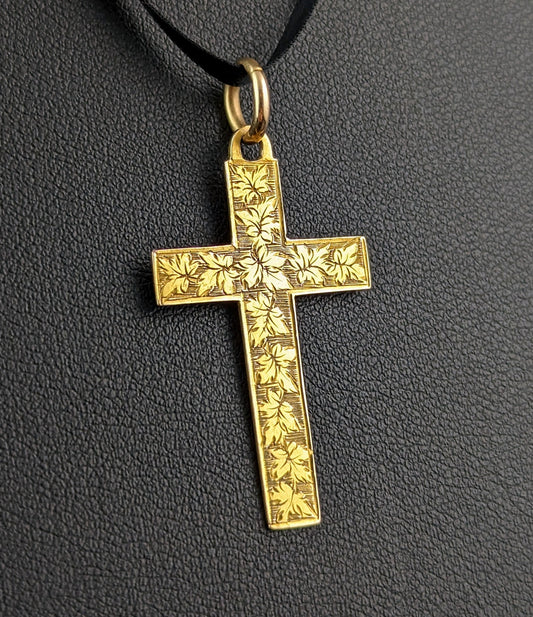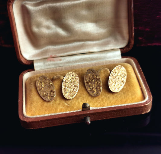 Antique 9ct gold cufflinks, floral engraved, boxed