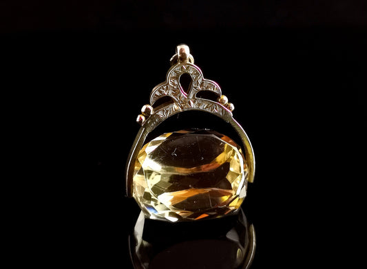 AusverkauftAntique 9ct gold Citrine spinning fob, Victorian