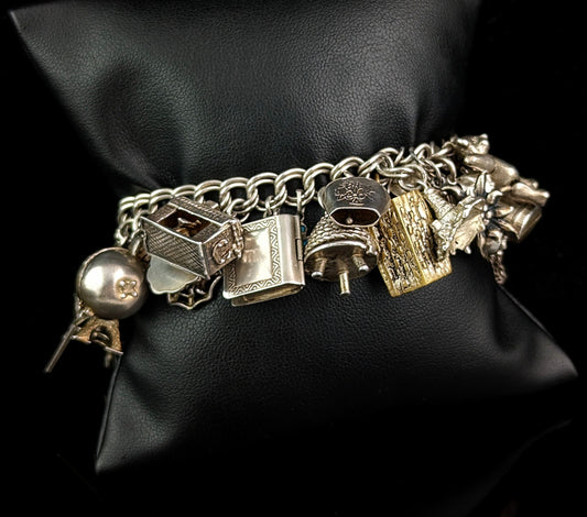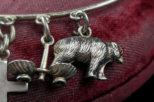 Antique Victorian sterling silver charm bracelet, Bangle, Charms