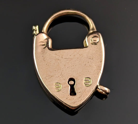 Antique 9ct rose gold heart padlock clasp, Edwardian