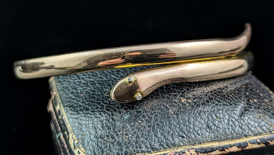 Antique 9ct rose gold snake bangle, Diamond, Upper Arm bracelet