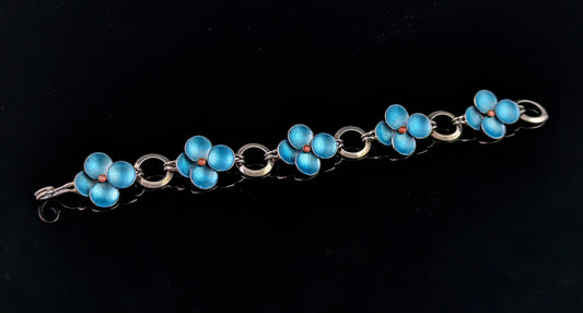 Vintage silver and enamel flower bracelet, Instone, Art Deco