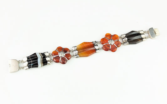 Antique Scottish agate bracelet, sterling silver, Victorian, floral