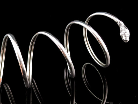 Antique Art Deco silver coiled snake arm bangle, bracelet