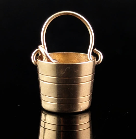 Vintage 9ct yellow gold bucket charm, pail pendant