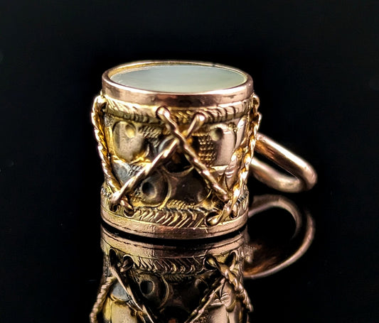 AusverkauftAntique 9ct gold drum charm, Art deco era