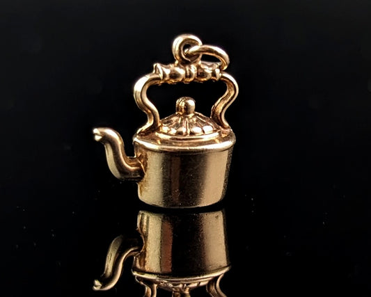 Vintage 9ct gold kettle Charm, old Victorian style kettle