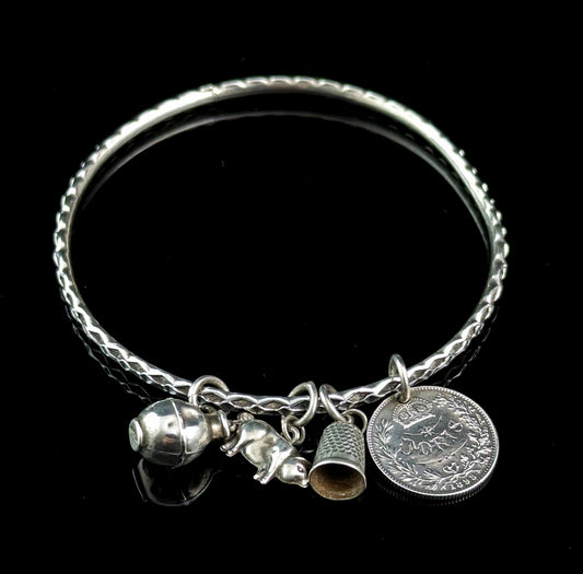 Antique sterling silver charm bangle, bracelet, lucky charms