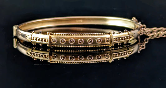 Antique 9ct gold Etruscan revival bangle, Victorian, Cannetille