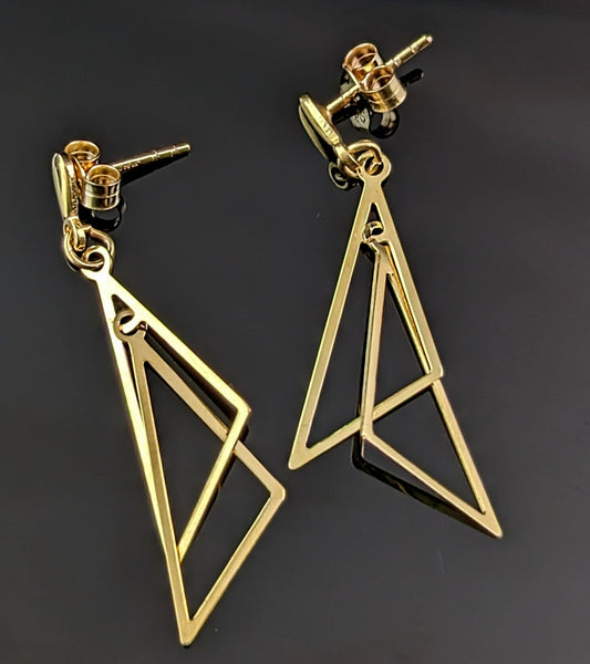 AusverkauftVintage 9ct gold triangle drop earrings, 1980s