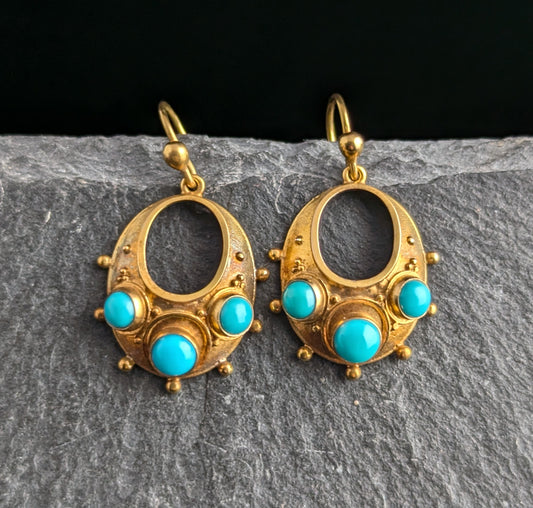 Vintage 9ct gold drop earrings, Turquoise, Victorian revival