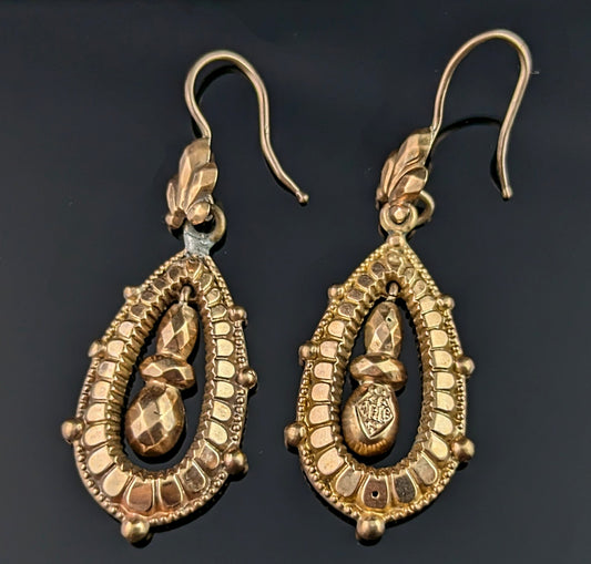 AusverkauftAntique Victorian 9ct gold drop earrings, dangle