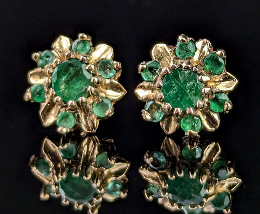Vintage Emerald floral stud earrings, 9ct yellow gold