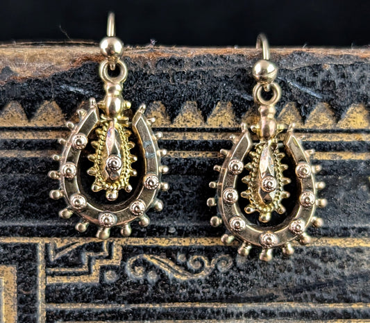 Antique Victorian 9ct gold lucky horseshoe earrings, Etruscan revival