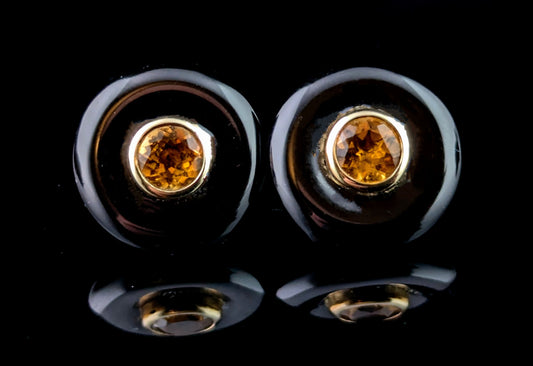 Vintage Onyx and Citrine stud earrings, 9ct yellow gold