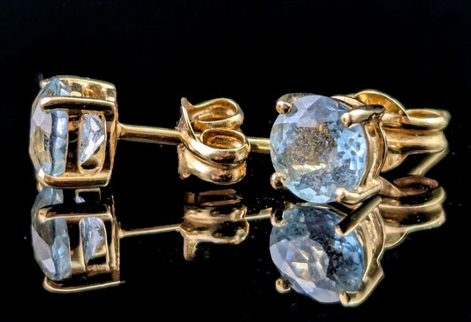 Vintage Aquamarine stud earrings, 18ct yellow gold