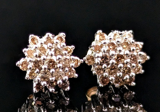 AusverkauftVintage Brown Diamond stud earrings, Cluster, 9k