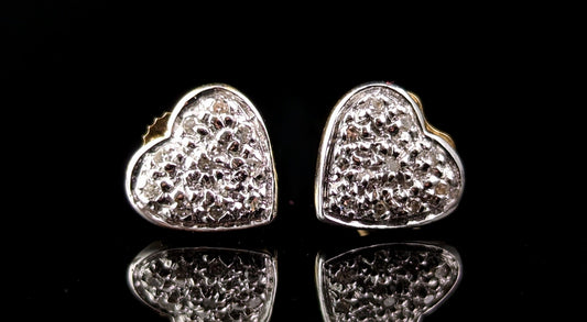 AusverkauftVintage Diamond heart stud earrings, 9ct gold