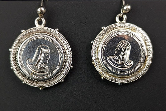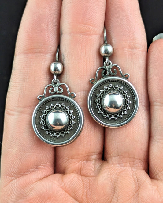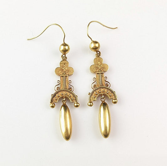 Antique Victorian Etruscan revival dangle earrings, 15ct gold