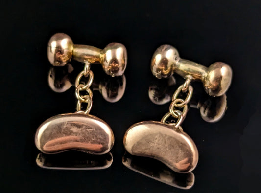 Antique 9ct rose gold lucky bean cufflinks, Edwardian
