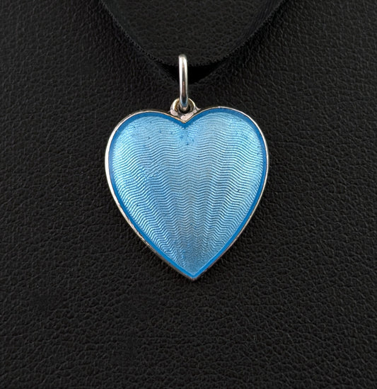 Vintage Norwegian silver and enamel heart pendant, prayer
