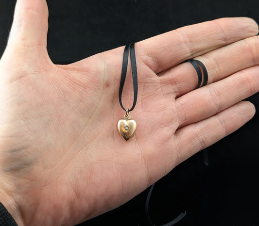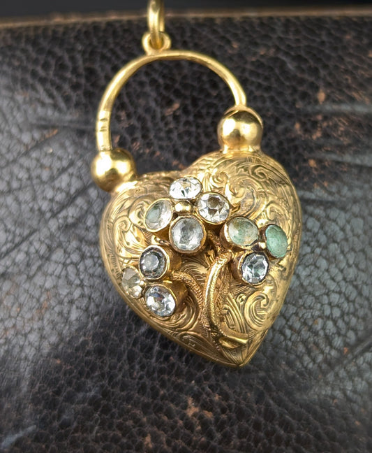 Antique Regency heart padlock locket pendant, 9ct gold and Paste