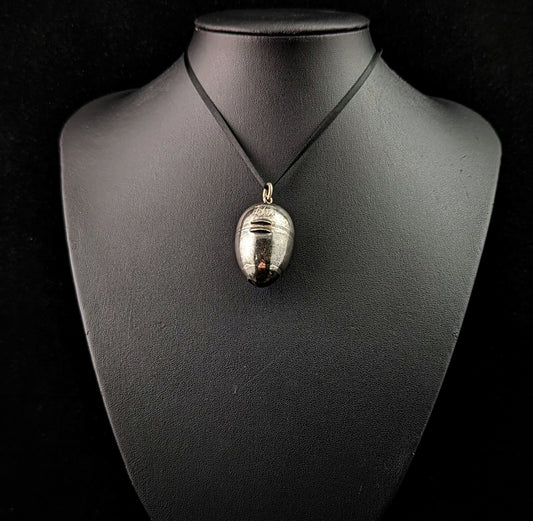 Antique sterling silver egg pendant locket, thimble holder