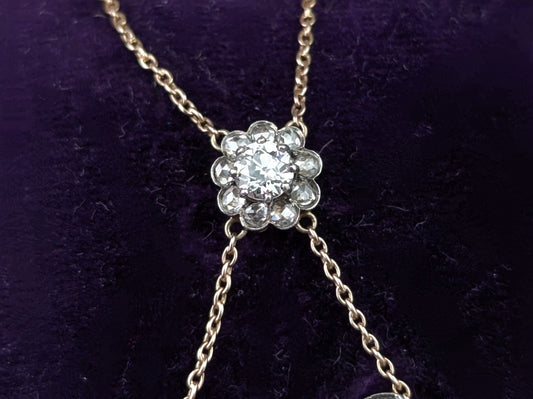 Antique Pearl and Diamond shamrock pendant necklace, Brooch, clover