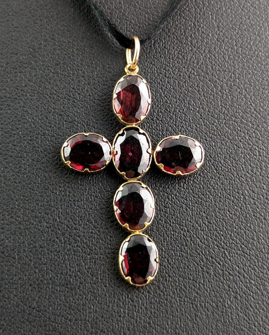 Antique Garnet cross pendant, 18ct gold, Victorian